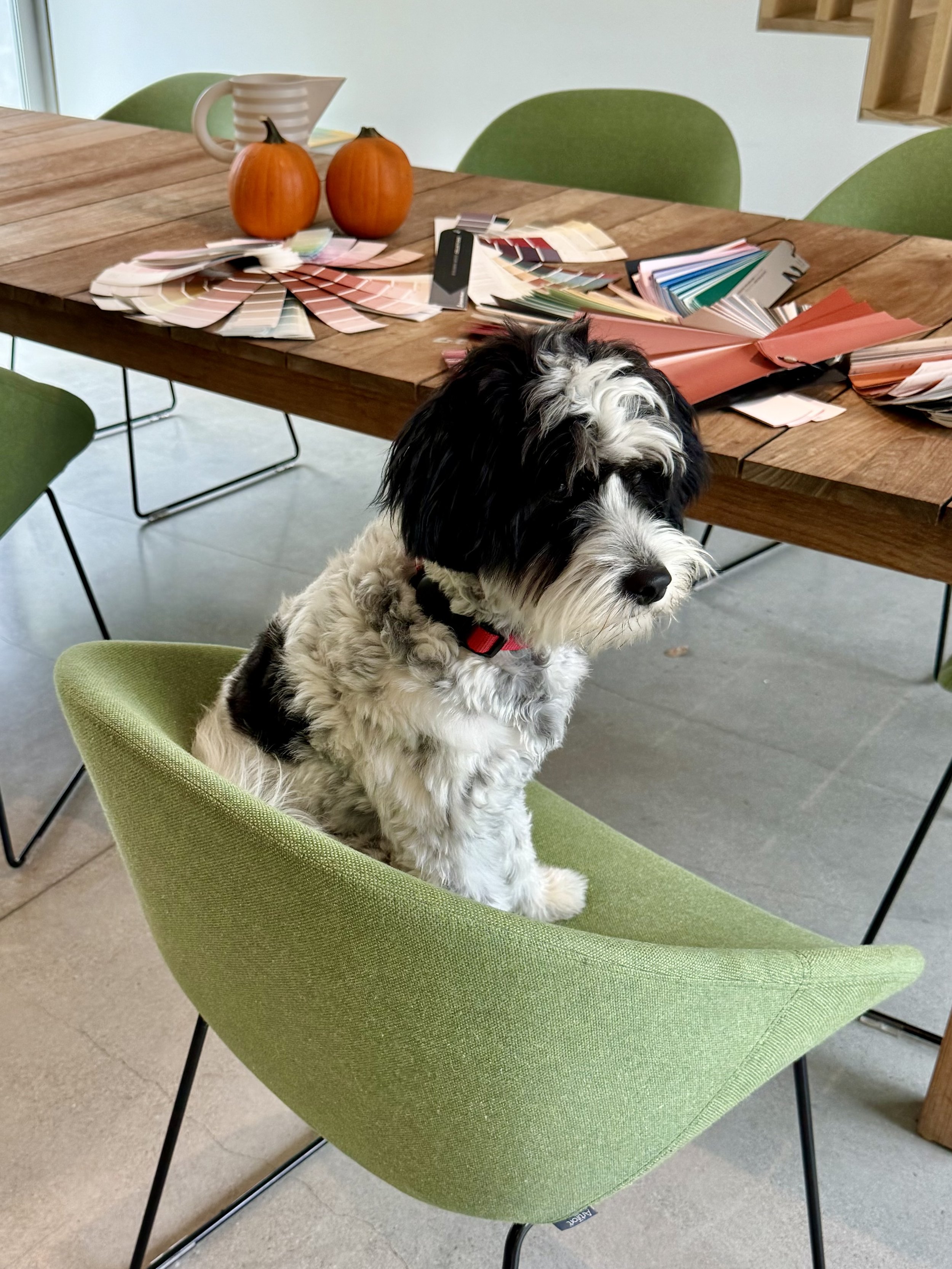Glory takes her responsibilities as Office Best Girl seriously, insisting on poking her pointy proboscis in other people's projects. This is especially true when there's a design meeting that requires canine input.